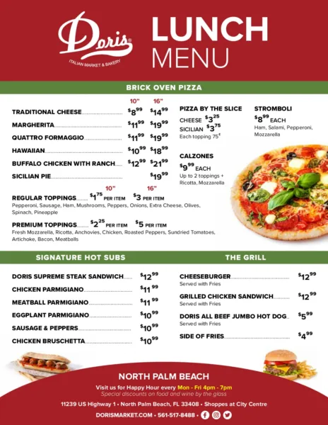 Lunch/Pizza Menu -North Palm Beach only