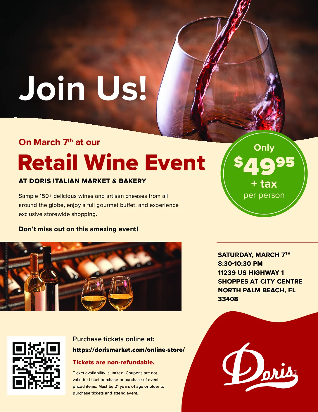 Sample from a selection of over 150 wines from around the globe, at the overall lowest pricing in the market. Special discounted pricing only available the night of our wine event.